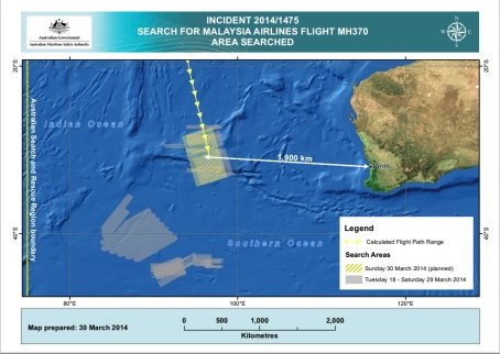 Yesterday a Chinese surveillance plane yesterday spotted three objects – coloured white, red and orange – in a new search zone west of Perth and an Australian P3 Orion spotted numerous items. Though the colours of the objects appeared to match Malaysia Airlines’ colours, the source of the objects has yet to be identified. Several small objects spotted by planes on Friday were yesterday picked up by Australian and Chinese ships and were found to be unrelated to the plane.