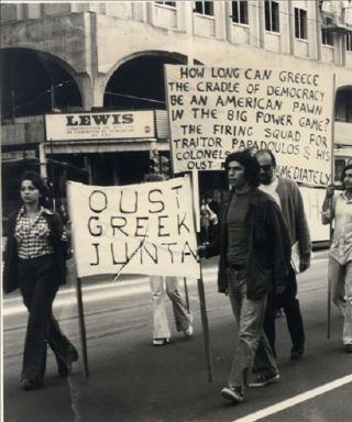 Από αντιδικτατορική διαδήλωση στο κέντρο της Μελβούρνης το Νοέμβριο του 1973 λίγο μετά την εξέγερση του Πολυτεχνείου