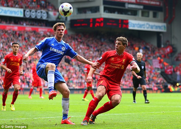 Ένα λεπτό αργότερα, στο 3ο λεπτό των καθυστερήσεων του πρώτου ημιχρόνου, η Τσέλσι ευτύχησε να ανοίξει το σκορ με τον Ντεμπά Μπα, έπειτα από τραγικό λάθος του Στίβεν Τζέραρντ.