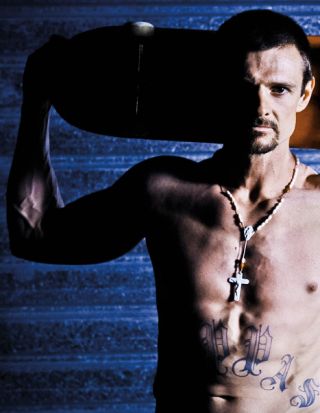 After a years long break from the vertical ramp and skateboarding, and three years in prison, he now lives a quiet lifestyle with his wife Helen and five year old son Billy. And he is back on board.