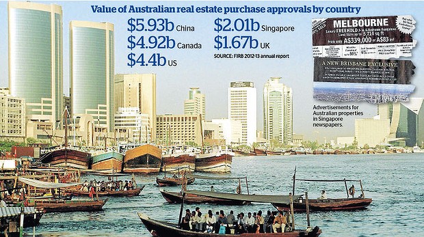 The latest available figures from the FIRB for the 2012-13 financial year, rank Singapore is the fourth-biggest source of foreign funds invested in Australian real estate, with about $2 billion spent. China was the biggest, with almost three times that much.