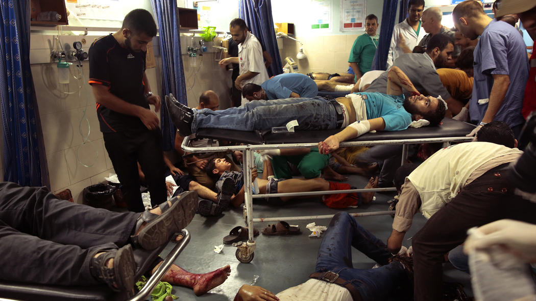 Ambulances streamed into the city’s main Shifa hospital, sirens wailing. Kamal Sawaf, 20, arrived with two injured cousins. One went into surgery, and the other was pronounced dead. He said the family was sitting in front of their house, watching the crowds mill about in the street, when the shelling started.