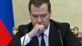 Russian Premier Dmitry Medvedev heads the Cabinet meeting in Moscow on Thursday