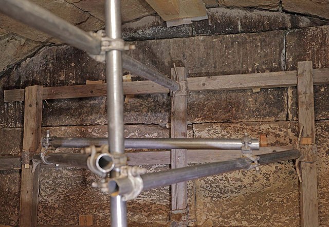 Στον ίδιο χώρο, που δημιουργείται μεταξύ του δεύτερου και του τρίτου διαφραγματικού τοίχου, διαπιστώθηκε σημαντική απομείωση διατομής των θολιτών, σε τμήματα τόσο του δυτικού, όσο του ανατολικού τμήματος της θόλου. Αντιστηρίχθηκε η στέψη της θόλου, με την τοποθέτηση ξύλινων δοκών σε επαφή με αφρώδες υπόστρωμα και κατακόρυφη υποστύλωση.
