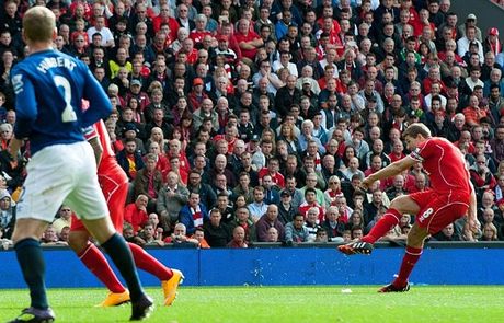 Με μια απίστευτη απευθείας εκτέλεση φάουλ από τον Στίβεν Τζέραρντ και ένα τρομερό σουτ του Τζαγκιέλκα, Λίβερπουλ και Έβερτον μοιράστηκαν το βαθμό της ισοπαλίας στο ντέρμπι του Μερσεϊσάιντ. Διαμαρτύρονται και για πέναλτι οι “κόκκινοι”. Αποχώρησε τραυματίας με τράβηγμα ο Μιραλάς στο πρώτο ημίχρονο.