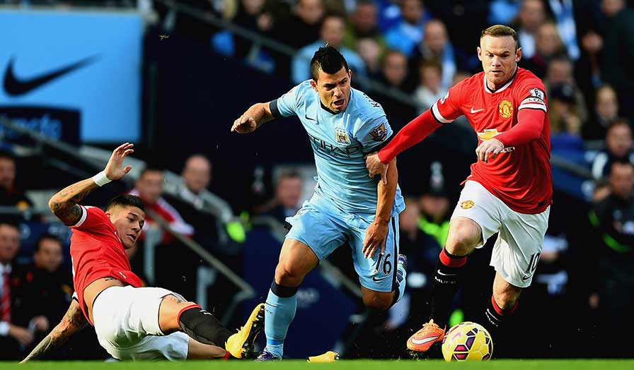 The visitors continued to look threatening, with Angel di Maria and Wayne Rooney, who was back from suspension, buzzing around in dangerous areas. Yet the game then took on an end-to-end nature, with De Gea making world-class saves to deny Jesus Navas and Aguero in quick succession.