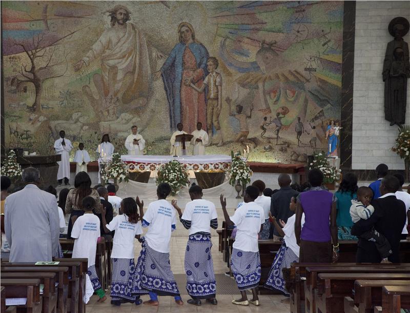 The choir at Shrine of Mary Help of Christian Church sings during the Christmas Mass in Nairobi, Kenya, Thursday, Dec. 25, 2014. Many Christians went to churches to offer their Christmas prayers across the country. (AP Photo/Sayyid Azim)