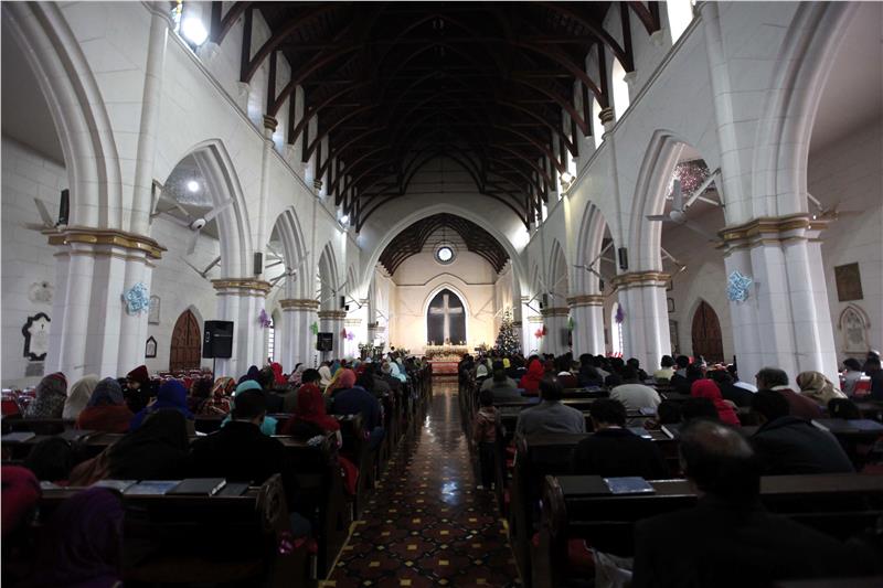 Pakistani Christians pray as they celebrate Christmas in Peshawar, Pakistan, 25 December 2014. Christians in Pakistan form the largest minority community, with about 1,6 per cent of the population. December 25th is celebrated as birth anniversary of Lord Jesus Christ. Christmas is basically celebrated by the Christians but it is also observed as a day of celebration by other communities around the globe. EPA/BILAWAL ARBAB