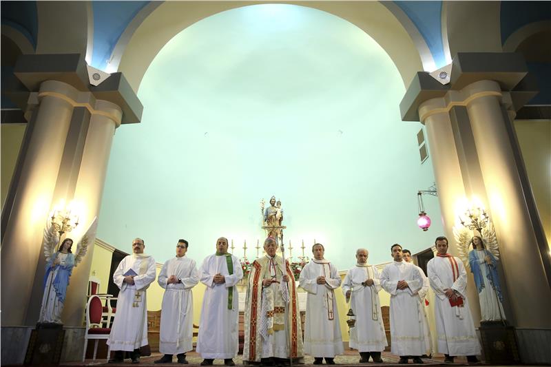 Assyrian Arch Bishop Ramzi Garmou, center, leads Mass that started on Christmas Eve at the Saint Joseph Chaldean-Assyrian Catholic church in Tehran, Iran, Thursday, Dec. 25, 2014. Iran’s minority group of Christians are celebrating Christmas and preparing for the new year. According to official figures, around 120,000 Christians live in Iran, mostly in central and northwestern parts of the country. Iranian Christians represent part of the parliament and freely practice their religion as allowed under the constitution. Other minorities, such as the Jews and Zoroastrians, are recognized in the same way by the law. (AP Photo/Ebrahim Noroozi)