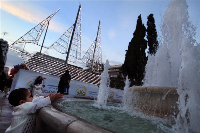 Μικροί και μεγάλοι κάνουν βόλτα στη στολισμένη πλατεία Συντάγματος ανήμερα των Χριστουγέννων, Αθήνα, Πέμπτη 25 Δεκεμβρίου 2014. ΑΠΕ-ΜΠΕ/ΑΠΕ-ΜΠΕ/ΣΥΜΕΛΑ ΠΑΝΤΖΑΡΤΖΗ