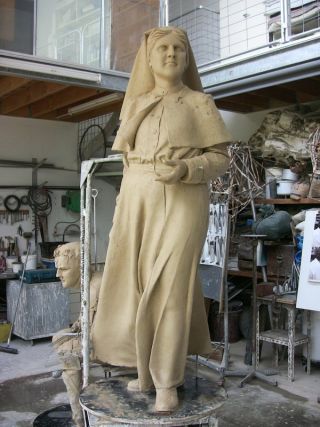 The memorial statue consists of a larger than life-size nurse and injured soldier, on top of a sandstone plinth, on which will be engraved the names of many of the Lemnos villages visited by the Anzacs. The inscriptions will be in Greek and English. The memorial will be completed by the addition of an information board and two flag poles.