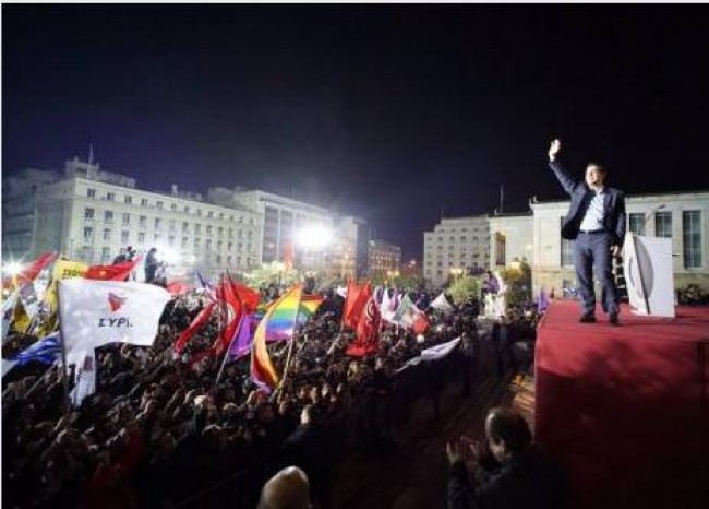 Φίλες και φίλοι, θέλω να ευχαριστήσω θερμά όλους και όλες εσάς. Μα πρωτίστως θέλω να ευχαριστήσω όλους και όλες, που είναι χιλιάδες, σε κάθε γωνιά της Ευρώπης, που έχουν έρθει και εδώ τις ξένες αντιπροσωπείες, γι αυτό το πρωτοφανές κύμα συμπαράστασης και για την αλληλεγγύη προς τον ελληνικό λαό που έρχεται από κάθε γωνιά της Ευρώπης. Η νίκη μας είναι ταυτόχρονα και νίκη όλων των λαών της Ευρώπης που αγωνίζονται ενάντια στη λιτότητα που καταστρέφει το κοινό ευρωπαϊκό μας μέλλον. Με γνώμονα το κοινό συμφέρον όλων των λαών της Ευρώπης θέλω να σας διαβεβαιώσω, η νέα ελληνική κυβέρνηση θα είναι έτοιμη να συνεργαστεί και να διαπραγματευτεί για πρώτη φορά με τους εταίρους μας μια δίκαιη, αμοιβαία επωφελή και βιώσιμη λύση για να βγει η Ελλάδα από τον φαύλο κύκλο της υπερχρέωσης, για να επιστρέψει η Ευρώπη στη σταθερότητα, στην ανάπτυξη, στην κοινωνική συνοχή, στις αρχές και τις αξίες που αποτέλεσαν ιδρυτικές της αρχές και αξίες, όπως η δημοκρατία και η αλληλεγγύη.