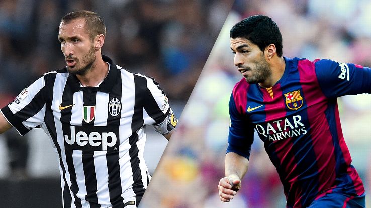 With Suarez’s tendency to drift wide from his centre-forward role, switching positions with Lionel Messi, he’ll encounter both Juventus’ left-back and their left-sided centre-back regularly. But it’s Chiellini he’ll battle against most regularly, and it’s worth remembering the nature of their encounter in Natal last summer.
