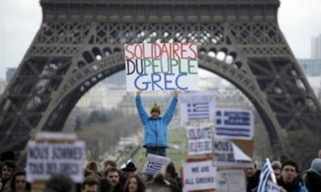 Πολλές χιλιάδες άνθρωποι διαδήλωσαν σήμερα στο Παρίσι, εκφράζοντας την αλληλεγγύη τους για την Ελλάδα. «Υποστηρίζουμε την Ελλάδα. Στοπ στη λιτότητα», «Ο ΣΥΡΙΖΑ ανοίγει το δρόμο», «Οι λαοί ορθώνονται», «ευρωπαϊκή αλληλεγγύη με τον ελληνικό λαό, ενάντια στη δικτατορία του χρέους και της λιτότητας», ήταν μερικά από τα συνθήματα γραμμένα στα πανό των διαδηλωτών.