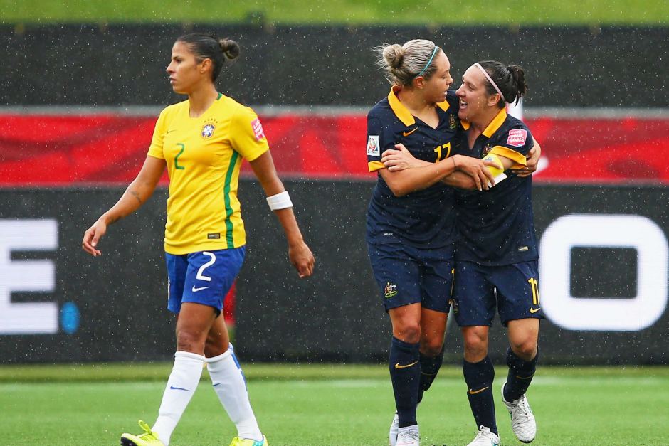 Captain Lisa De Vanna broke through with her shot punched out by Luciana in the Brazil goal straight into the path of the onrushing Simon, who made no mistake.
