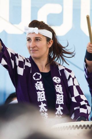 Mia-Alexandra Sky (Skiadopoulos) playing a Wadaiko Rindo gig in Melbourne. Photo: Wilari Tedjosiswoyo.