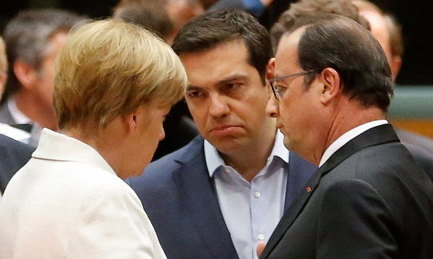 A weekend of high tension that threatened to break Europe in two climaxed on Sunday night at a summit of eurozone leaders in Brussels where the German chancellor, Angela Merkel, and President François Hollande of France presented Greece’s radical prime minister, Alexis Tsipras, with an ultimatum.