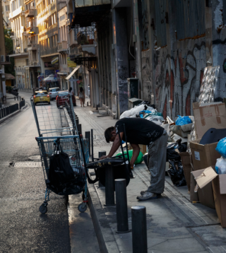 A man collects scrap metal in the backstreets of central Athens, Wednesday,Photo: AP/Daniel Ochoa de Olza