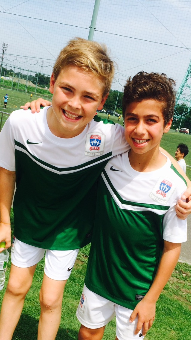 Hamilton Olympic juniors Patrick Bond and Adam Zervas playing at Saitama 2002 World Cup Stadium with the emerging Newcastle Jets u12s.