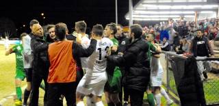 Σκηνή από τα επεισόδια μεταξύ των παικτών των Greens και Hume City στον μεταξύ του αγώνα (2-0 υπέρ των Greens) Photo: Κώστας Ντεβές