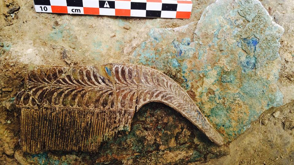 The rich finds could form the basis of a different interpretation of the past. Until recently, archaeologists would uncover graves containing numerous bodies and scientists would separate the objects found within between the men and the women in the grave. The warrior’s tomb, which contained the remains of just one individual, allows the experts to attribute all of the objects to him, even those that may be considered feminine.