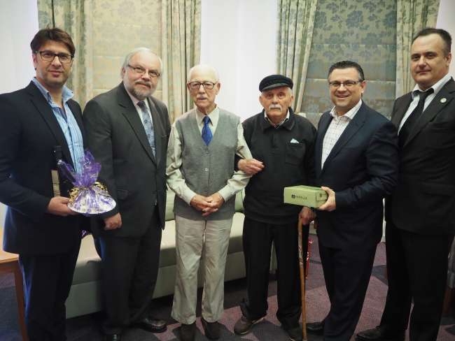 Mr Iliopoulos, a native of Pylos, presented Bill with a birthday present including produce from the Pylos-Methoni region.