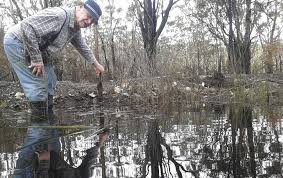 “I don’t think it’d be a good place to live,” he said, after PFOS at elevated levels was found in bores on his property which is regularly flooded from water leaving the base. The water remains stranded because of failed levees.