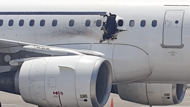 Intl Avion de DalloAirlines sufre emergencia y aterriza en Somalia, se le hizo hueco a fuselaje 2heridos (2 fotos) pic.twitter.com/0ykSa0nWZE