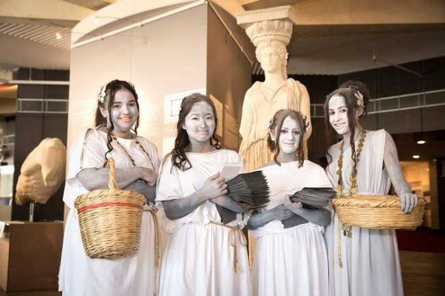 Υπό τη συνοδεία μουσικών οργάνων, οι μαθητές και μαθήτριες του Κολλεγίου Αγίου Γεωργίου, καλωσόρισαν τους επίσημους προσκεκλημένους στην είσοδο του πολυχώρου φορώντας αρχαιοελληνικές ενδυμασίες.