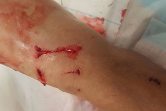 Imit helps the girl up and hugs her, delicately and cautiously, trying to avoid her wounds. He then starts kissing her shoulder and asks.