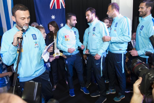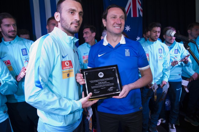 The Victorian Government together with the Greek Community of Melbourne welcomed Greece’s National Mens Football Team yesterday morning at a function held at the Greek Centre overlooking Lonsdale Street. The team is in Melbourne to play a friendly against the Caltex Socceroos on Tuesday 7 June at Etihad Stadium.