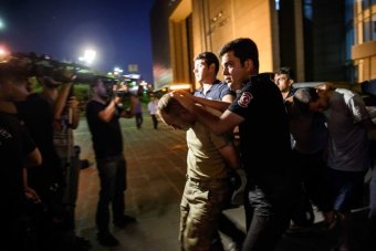 “We are looking with concern at news … that thousands of people have been dismissed and suspended, including soldiers and judges, and that university professors are now being prevented from leaving the country, that broadcast stations are being closed and having their licenses withdrawn,” Mr Steinmeier said.
