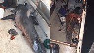 The fisherman explained how the shark suddenly launched itself out of the water, clearing the engine and landing on the deck, where it thrashed about violently.